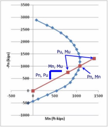 Section 3.4 Interaction Diagrams Last Revised: 01/27/2026 Up to this point, only the strengths associated with a randomly selected neutral axis have been discussed. Little mention has been made of computing the strengths related to a particular set of applied forces. That problem will be solved in this section. Typically, design starts with a known value of internal forces (axial force, moments, and shears) resulting from a structural analysis. The goal is to find a member which has sufficient strength to support these forces. For now, we are concentrating on axial force and moments, which cause normal stress on a cross section. Shear will come in another chapter. Quite frequently, linear members (i.e. beams and columns) have special cases of the possible three possible normal internal forces, (Pu, Mux, and Muy). For example, the most common special cases are: