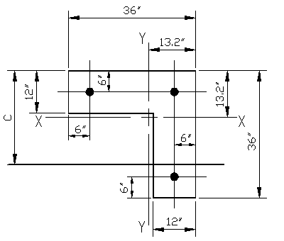 Solution: Part (a) For c=0", the entire section is considered to be in tension with the strain in the steel being beyond the steel strain. None of the concrete contributes to the strength. As all the bars are the same size, the force in each bar is the same: Ti = (60 ksi) x (1.27 in2) = 67.6 kips/bar Given that there are three bars: Pn = 3 x (67.6 kips) The associated nominal moments can be found by taking moments about each principle axis: Mnx = (67.6 k)(6" -13.2") + (67.6 k)(6" -13.2") +