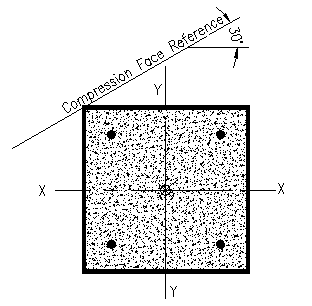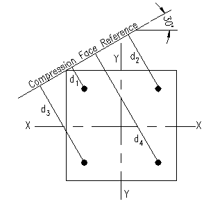 A615 Gr. 60 rebar arranged as shown. The neutral axis is rotated 30 degrees from