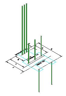 -0.003*(25"-3")/25" = -0.00264 Next, the stress in the bars can be determined: fS1 = max[min[-0.00264*(29,000 ksi), fy],-fy] fS2 = max[min[-0.00084*(29,000 ksi), fy],-fy] fS3 = max[min[+0.00096*(29,000 ksi), fy],-fy] Figure 3.6.1.3 is a 3D depiction of the stress distribution in the bars. Note that the volume (fs*Ab) of 3D stress diagrams equals the force in each bar. Note that upward on the diagram is the compressive, or negative, stress direction. Finally, we can determine the force in each bar. In the spreadsheet computation, the forces for each of the eight bars is computed. However, this can be simplified in this case as there is only bending about the X-X axis and there are three sets of bars, each having the same distance from the neutral axis, strain, and stress within the set. In this case, each bar in a "bar set" have the same bar area, Ab. The area of a #9 bar is 1.00 in2, making this computation rather straight forward: TS1 = fS1 * AS1 = (-60.0 ksi)(3