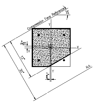 A615 Gr. 60 rebar arranged as shown. The neutral axis is rotated 30 degrees from