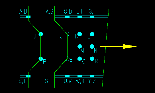 This is NOT A VALID PATH! Note that not all the bolts are "left behind" when the main part of the member is pulled away. All bolts except A, B, J, P, S and T are in the "left behind" part attached to the W section and the rest are in the "torn away" part. Since the "torn away" part is also still attached to the W section, the only way that this fracture can occur is if the W section also fractures at the same path... not a possible or likely event!