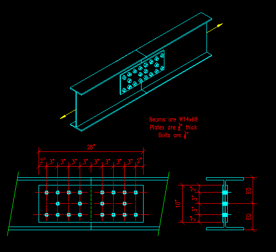 In this example we will connect two W14x68s with a pair of 3/8" thick splice plates as shown in Figure FP-2a.