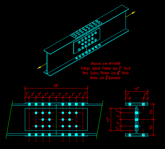 In this example we will connect two W14x68s with (4) 3/8" thick splice plates as shown in Figure FP-3a.