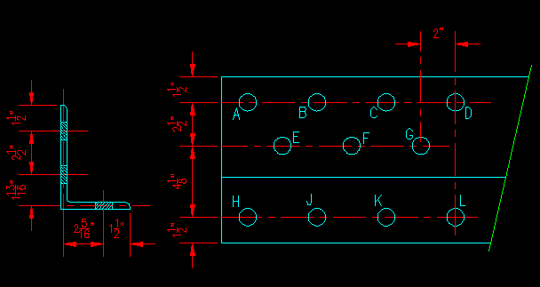 Note that you will get slightly different results from this approach than from method of deducting areas from the recorded Ag for the angle. This because this method does not account for fillets at the ends of the legs and at the plate intersection. The difference is not significant.