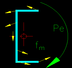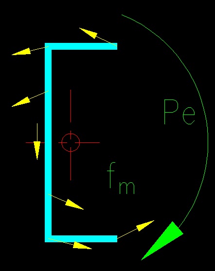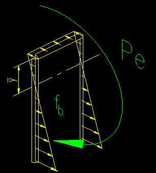The stress due to the rotational force are depicted in Figure 5.2.8. Figure 5.2.8 The stresses are computed using the bending stress equation: fb = Pe c/Iw Where: