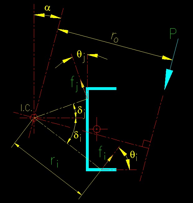 As with bolts, the Elastic Method is conservative and inconsistent with test results. The IC method is more consistent with test results because it takes into account the simultaneous translation and rotation, without superposition, of the loaded connection. The method is presented in the SCM starting on page 8-13. The IC method for weld groups follows the same principles used for the IC method for bolt groups. The main difference between the two methods is that welds tend to be continuous and there is a different load-deformation relationship. Figure 5.2.5 gives the basic geometric quantities that will be used in the following description of the method. The IC method for welds begins with dividing the weld into discrete elements. These discrete elements are treated similar to the bolts previously described in chapter 4 of this text. As with all discrete approximations, increasing the number of elements increases the accuracy of the results. Twenty elements seem to give good results for most connections. The load-deformation relationship (SCM equation 8-3) for welds is given on SCM page 8-13. This relationship approximates the load-deformation test data. As can be seen from SCM Figure 8-6, the load-deformation relationship changes with the angle between the axis of the weld and the direction of the reaction force in a manner that is consistent with the discussion given in BGSCM 5.5. The computation of the angle of load to weld axis complicates the load-deformation computation somewhat, as this angle must be determined for each element of weld. The load-deformation equation given on SCM page 8-13 results in a quantity that is in terms of stress. To obtain the load per unit length of weld the result of the equation must be multiplied by the weld effective throat, te. It appears that the SCM presentation on the IC method is not very complete. In the SCM 14th edition additional information was available in SCM J2.4(b). That information was not found in the SCM 15th edition. It is not in the SCM 16th edition either. The basic approach is to divide the weld groups into small elements, determine which element is the critical element (i.e., the one that will "fail" first), using the critical element, get the the deformations in all the other elements as a ratio of their distance from the IC, use the load/deformation relationship to get the stress in each element, compute the force in each element, then use equilibrium equations to determine if the right IC has been found. Repeat the procedure until the equilibrium equations all agree. The resulting Pn is the capacity of the weld group for the given location and direction of applied force. One of the example problems will demonstrate the method. Based on SCM 14th edition J2.4(b) and the explanation in Part 8 the method for computing the force in each of your weld elements goes something like this: